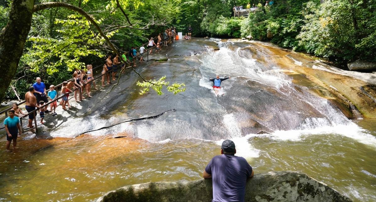 This is a favorite spot for families in the summer. Sliding Rock is a natural waterslide. The water flows over a smooth rock face and drops into a deep pool at the bottom.