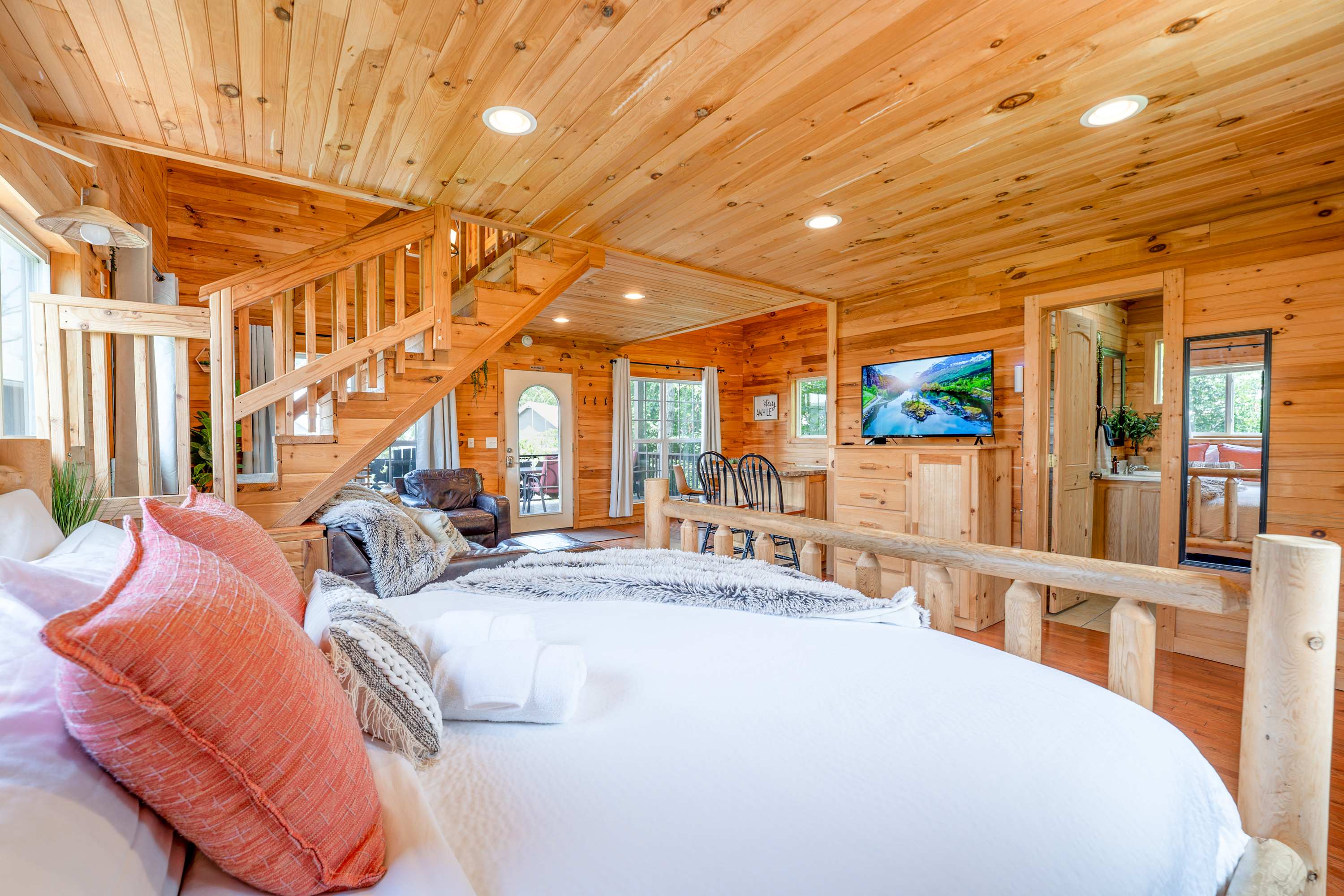 Come experience the peaceful beauty of Cloud 9 Cabin and enjoy a relaxing stay surrounded by nature. Book your escape today!