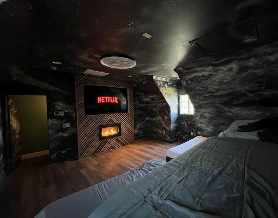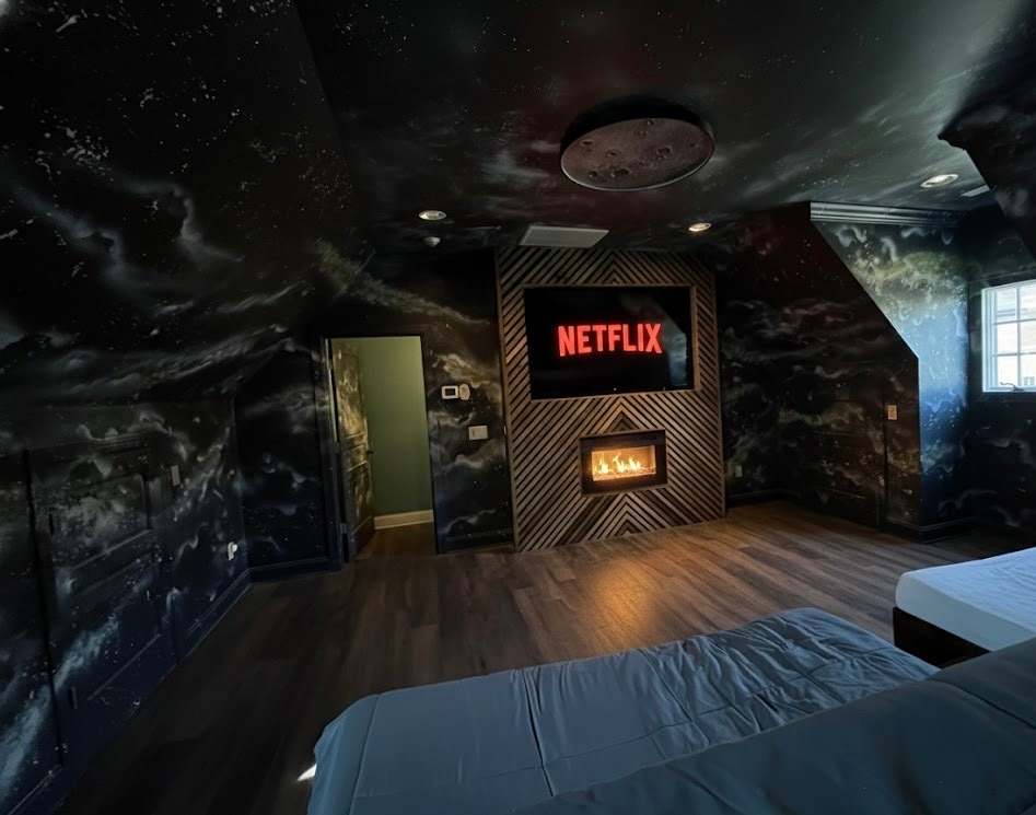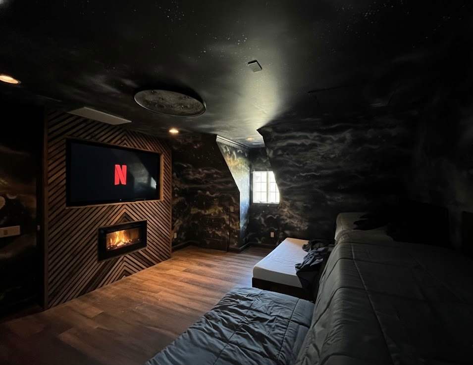 We’re excited to announce an upcoming enhancement to French Quarter: a thoughtfully designed playroom and gym combo being added to the garage space. This dynamic, shared area will blend fun and fitness, featuring a custom rock climbing wall, treehouse with a spiral slide, and an air hockey table alongside premium fitness equipment, including a Peloton bike, treadmill, and Tonal gym. We are also adding an out-of-this-world movie room. The photos in our listing are AI-generated to provide a look into the space once it is completed; some features may vary. Designed to appeal to both kids and adults, this one-of-a-kind space will elevate the guest experience and is scheduled for completion by March 2026.