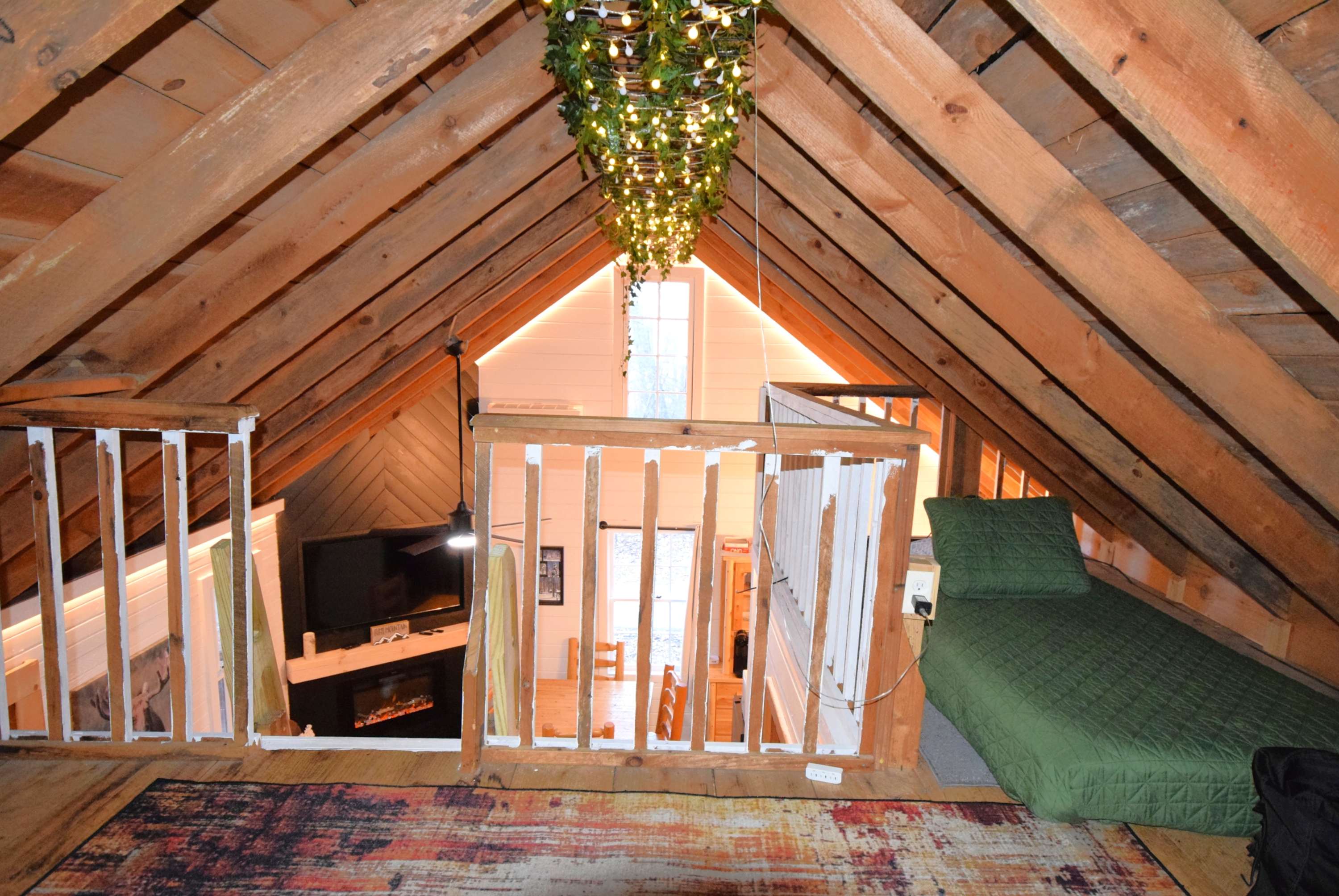 “The High Top cabin at Cabin Fever was a great place to relax and rejuvenate! It feels remote, but us only a few minutes drive to the charming town of Saluda. There is a small stream that you can hear from the s screened porches at night. The sauna and hot tub worked and were clean. Firewood is provided so we had fire in the fire ring outside. The buck stove inside worked well to provide heat, as well as the heat/ac units. The cabin has rustic charm and has good craftsmanship. There are “fairy” lights that line the apex of the inside roof add a magical charm to the place. We really enjoy staying at High Top and will be back!”