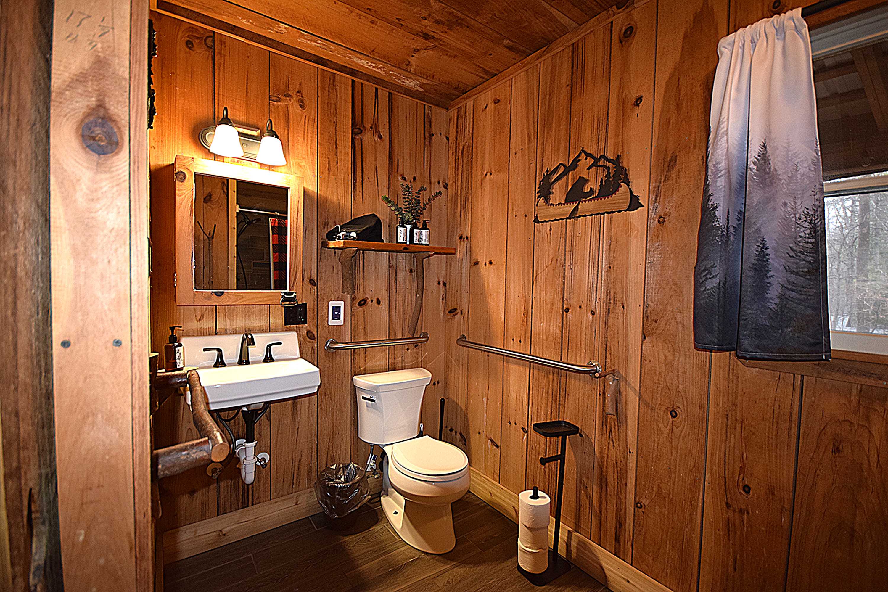 Experience the ultimate comfort and accessibility in Ma and Pa’s, the largest and only wheelchair-accessible cabin at Cabin Fever. Sleeping up to 8 guests, this spacious retreat features a king bed, twin trundle, and a loft with twin and full beds. Enjoy the beauty of the mountains with a private screened porch, fully equipped kitchen, and modern amenities including air conditioning and a cozy wood stove for those chilly evenings.