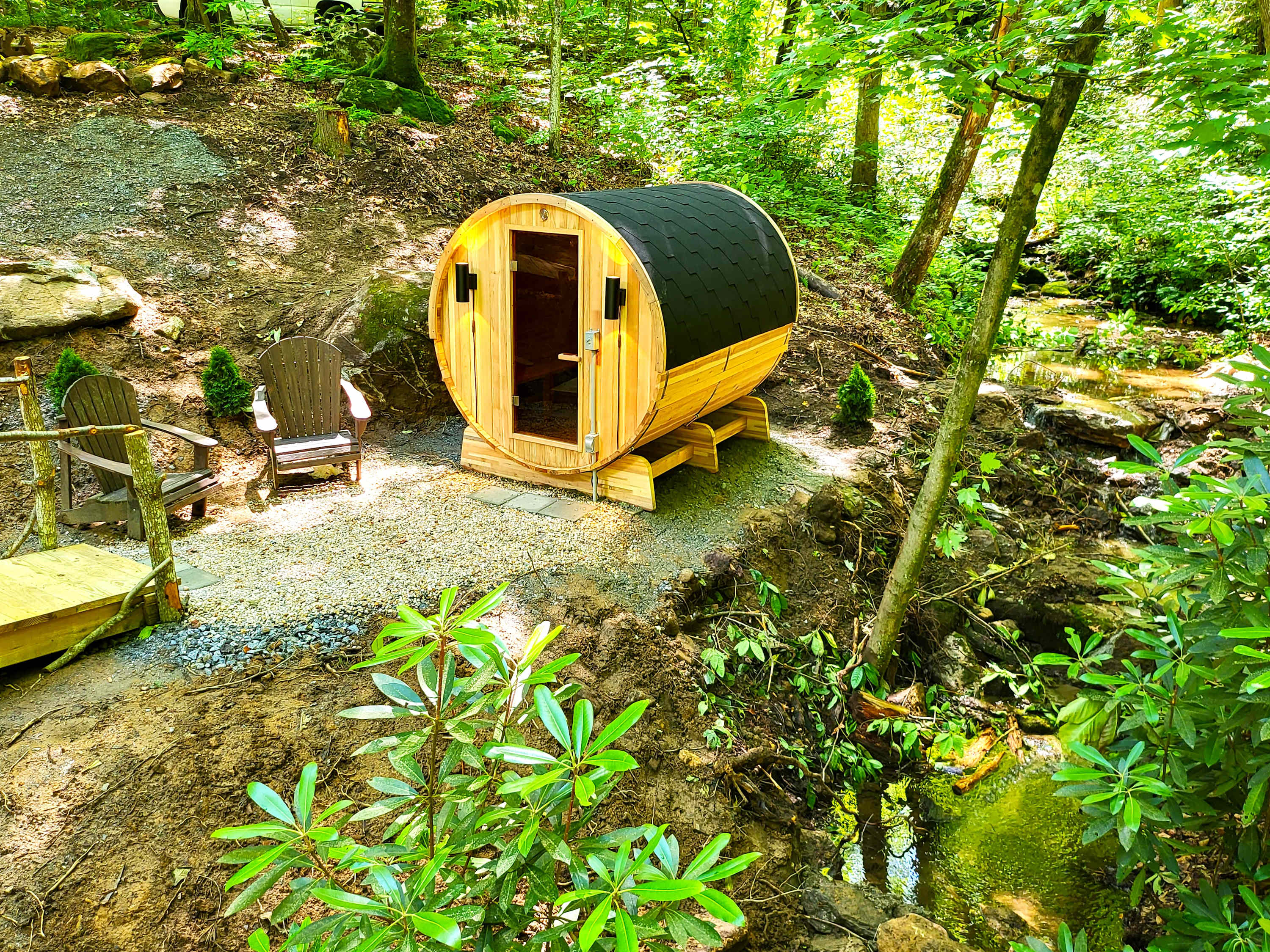“So adorable, we had a great time! Loved both the sauna and the outdoor bathtub, and the sound of the babbling creek as you sit on the porch is so nice.”