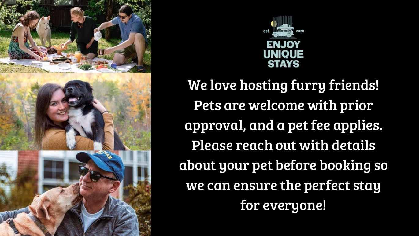 We love hosting furry friends! Pets are welcome with prior approval, and a pet fee applies. To help us ensure a comfortable stay for everyone, please share the number of pets you’re bringing along, as well as their breed and weight, before booking. We’re happy to consider your request and will get back to you promptly with approval.