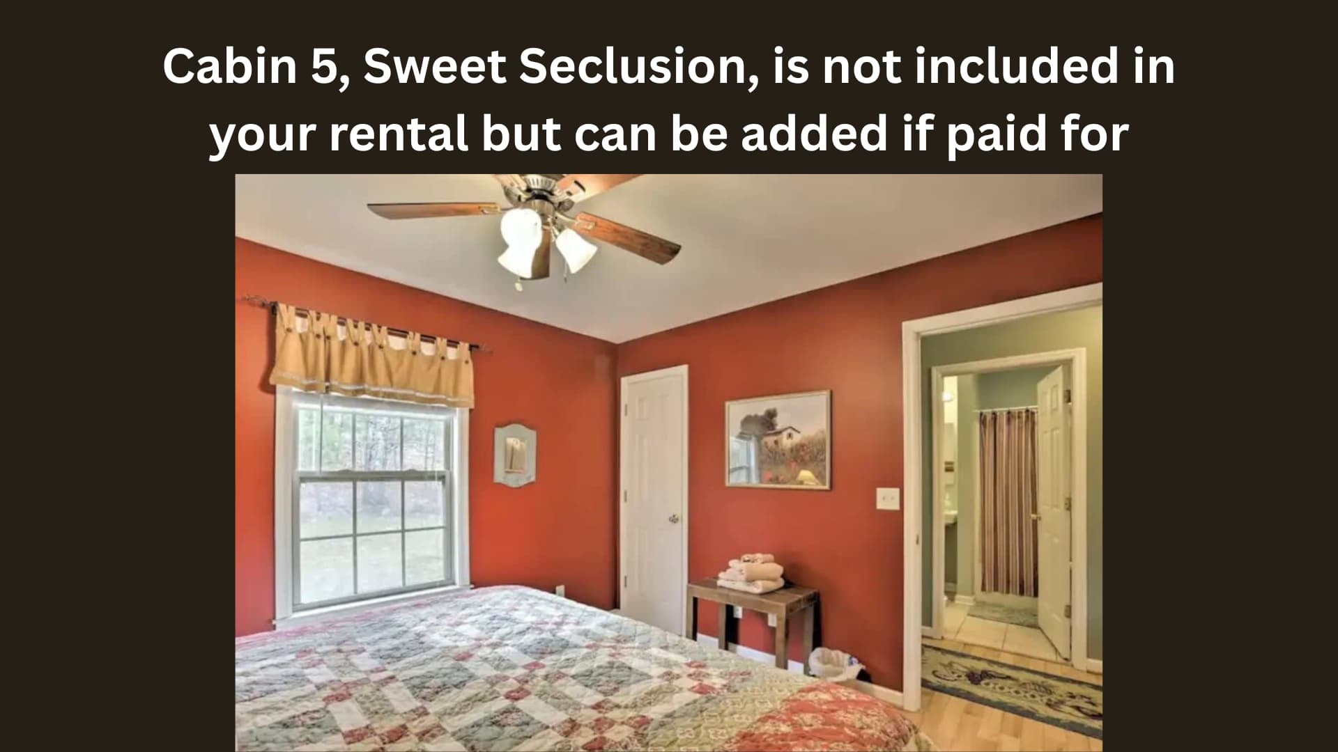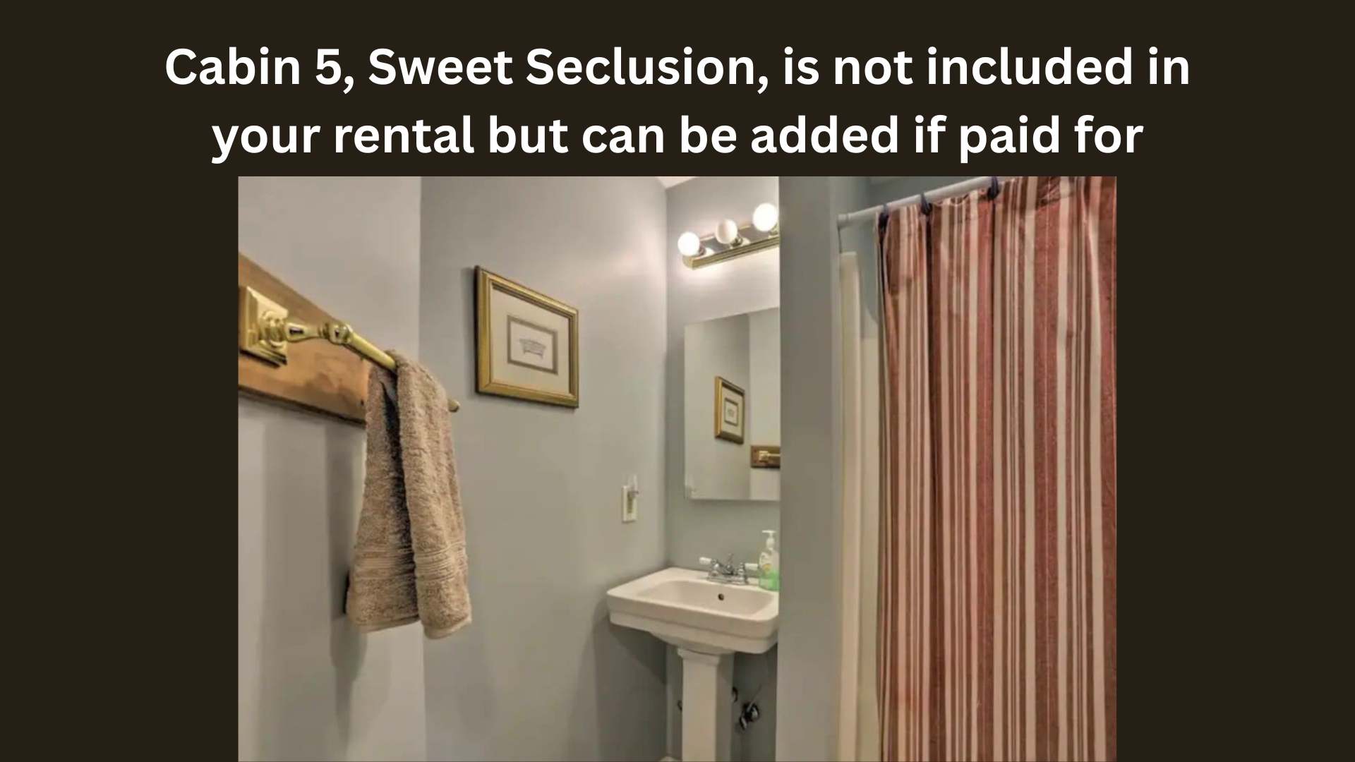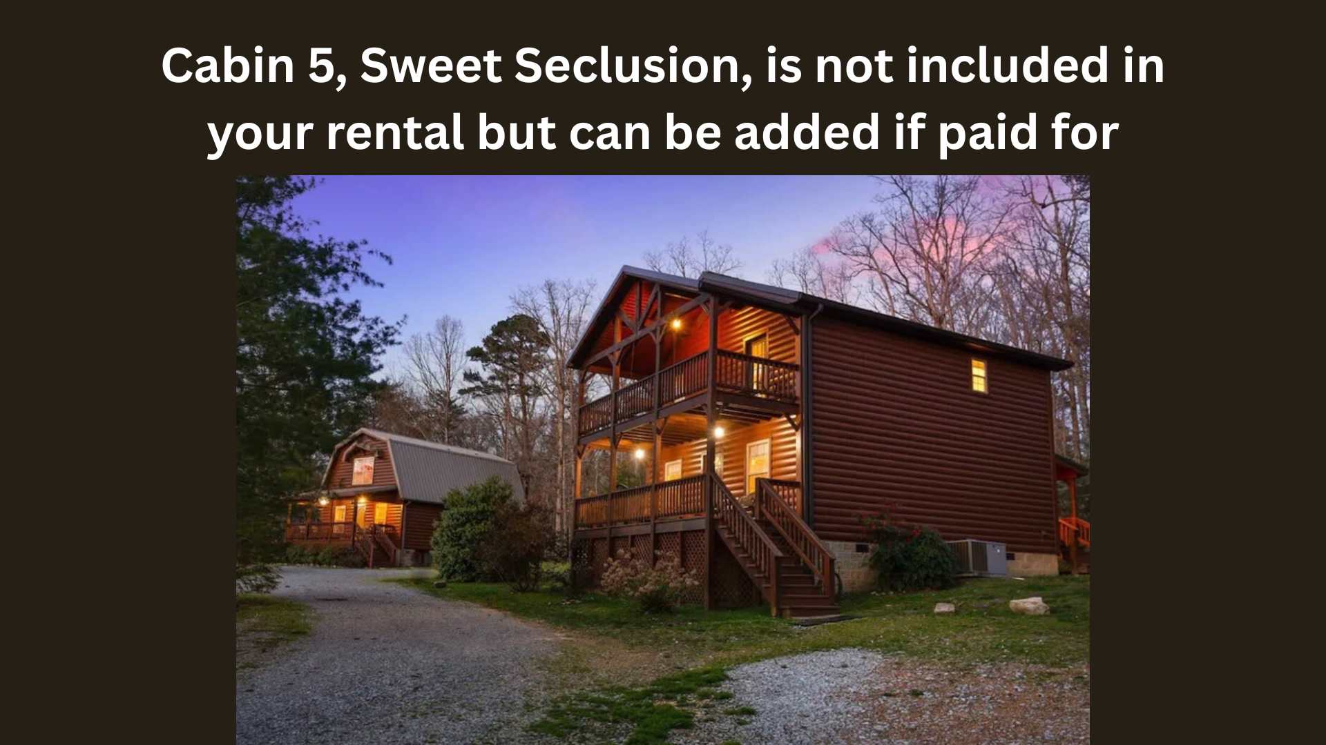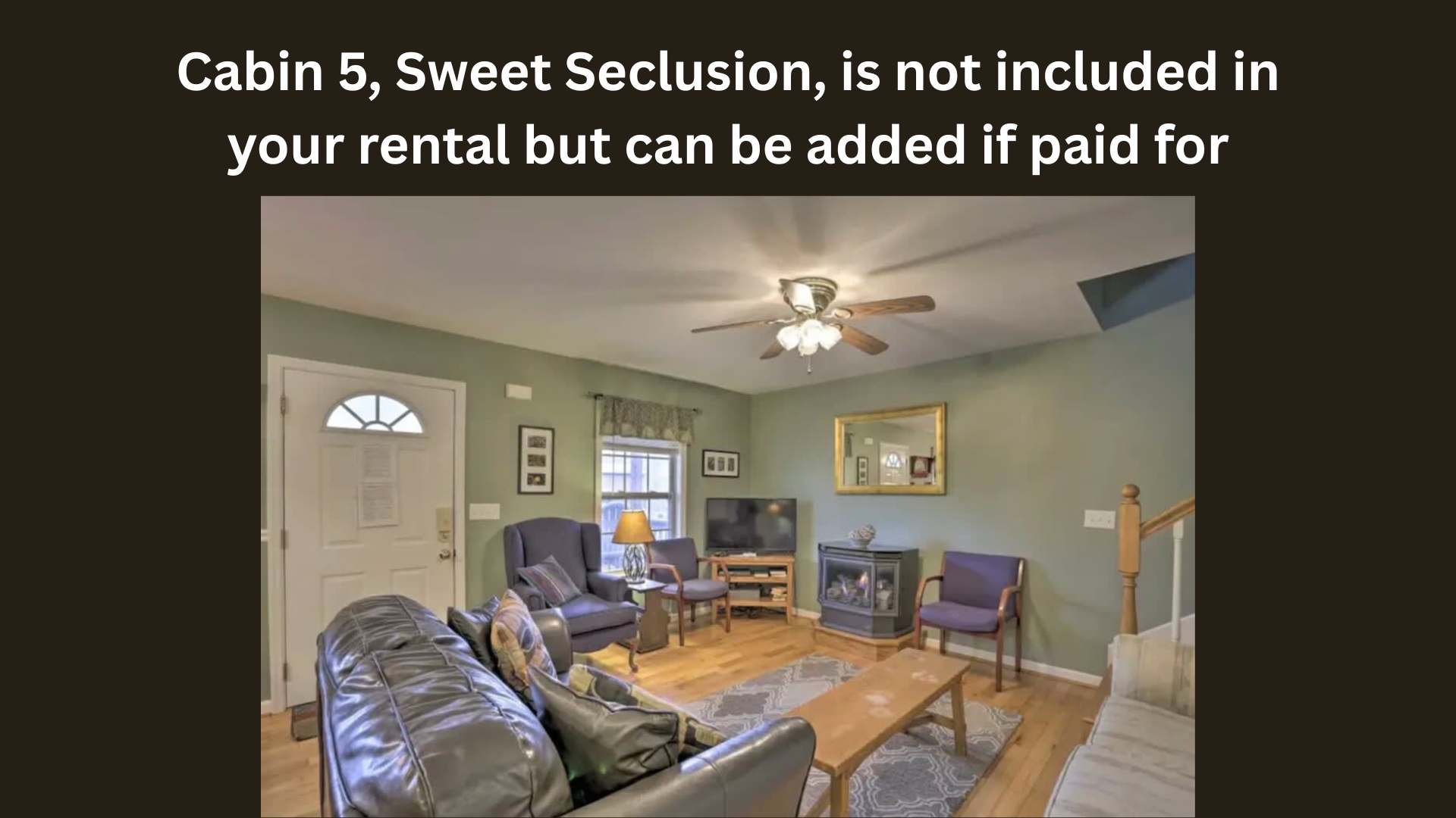 There are five total cabins on the property, when you book through this listing, you will be renting 4 of the 5 cabins. Cabins 1, 2, 3, & 4 are the cabins you are renting. If you would like to add the fifth cabin to your reservation, message us for the rates.