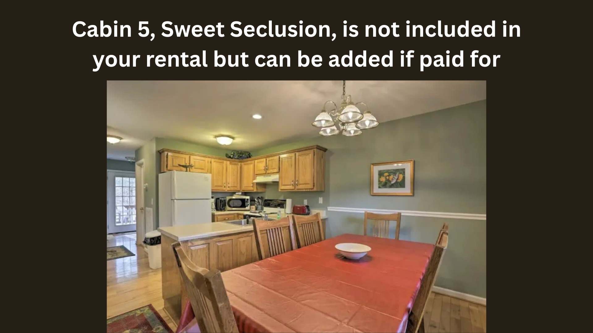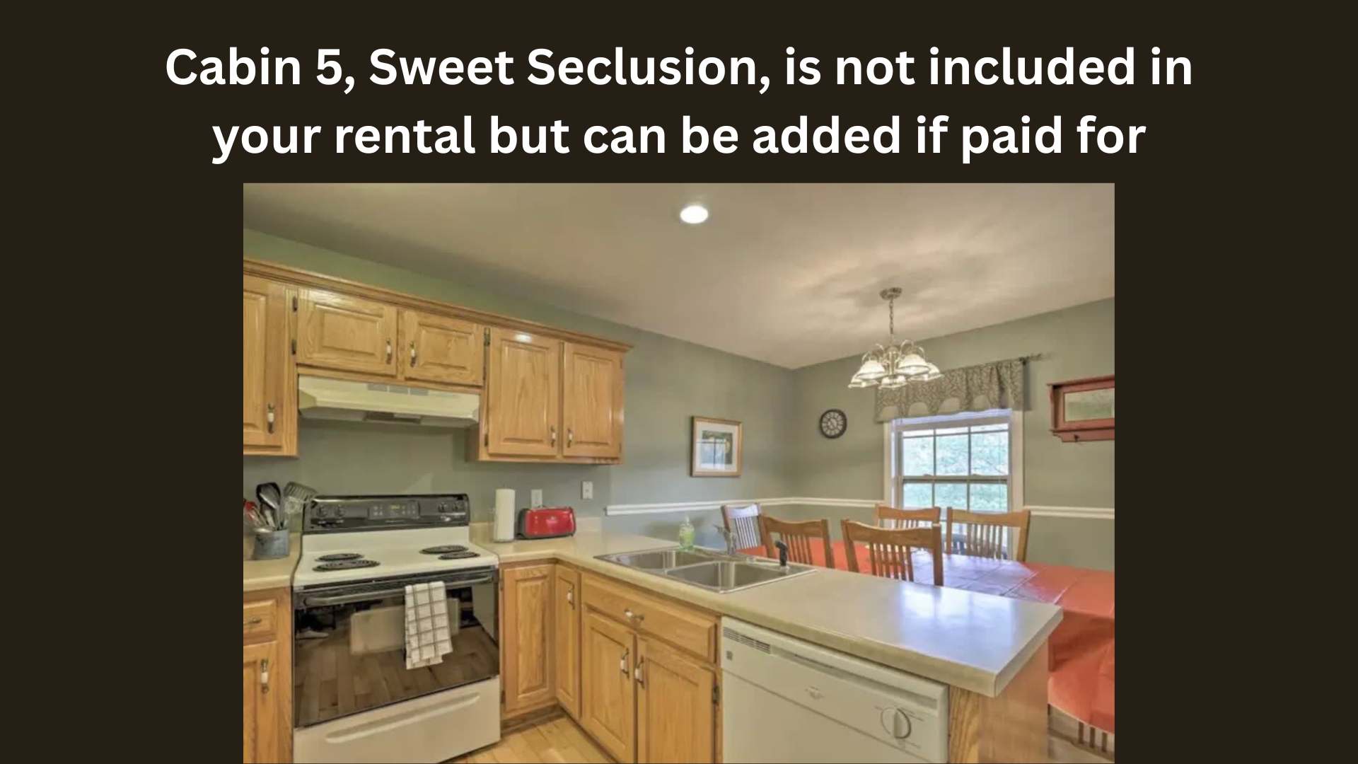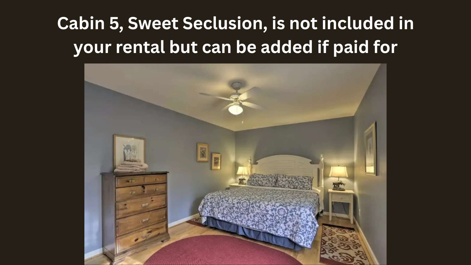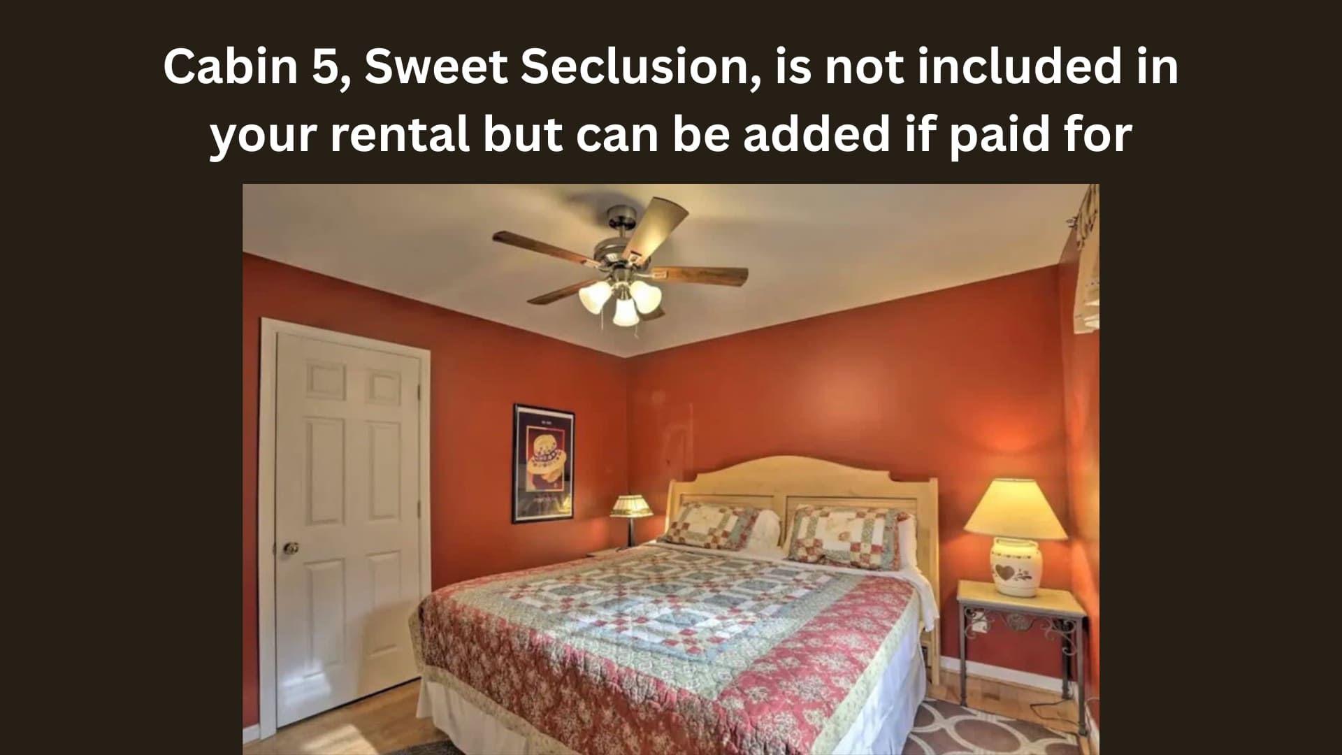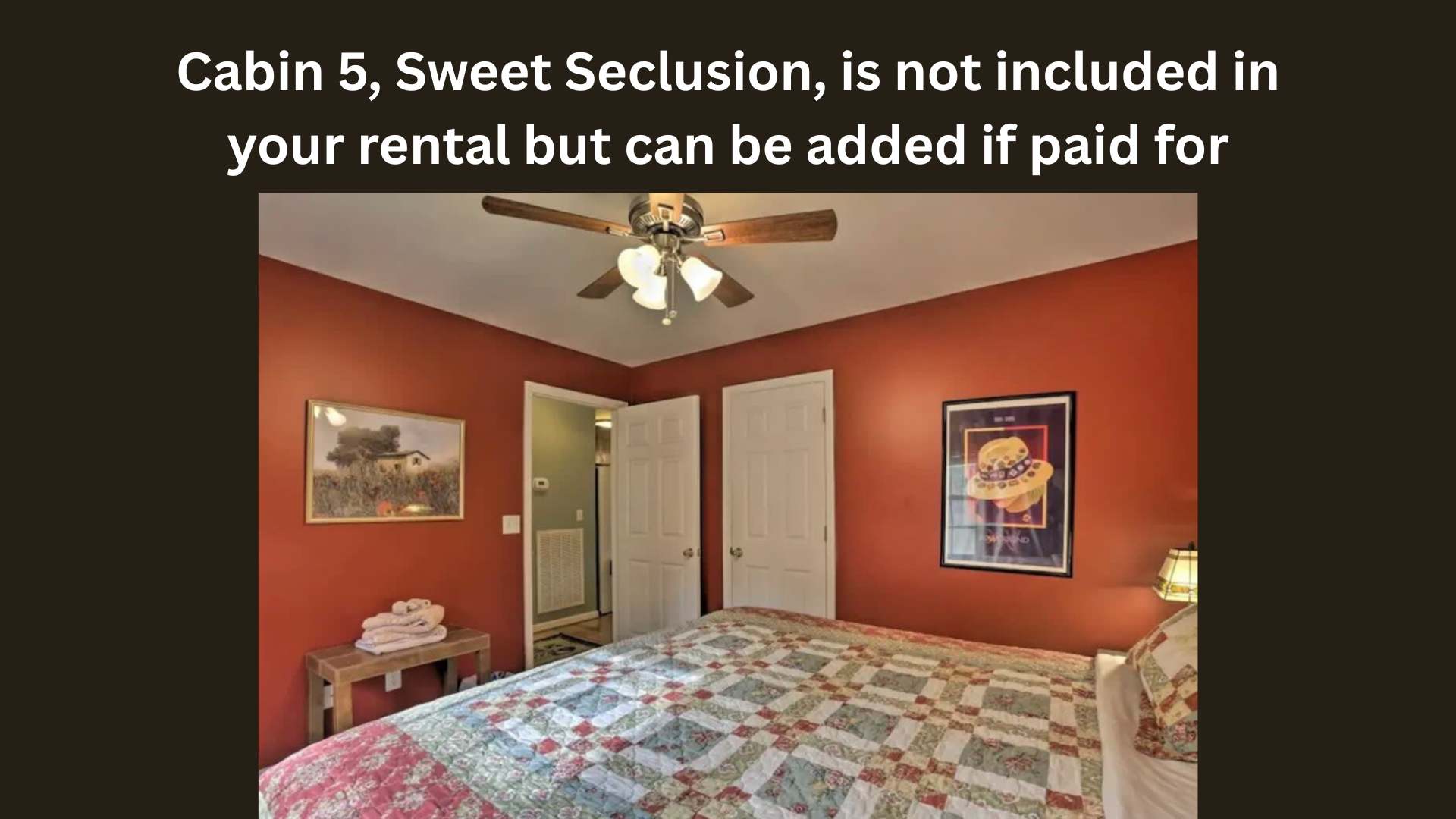 There are five total cabins on the property, when you book through this listing, you will be renting 4 of the 5 cabins. Cabins 1, 2, 3, & 4 are the cabins you are renting. If you would like to add the fifth cabin to your reservation, message us for the rates.