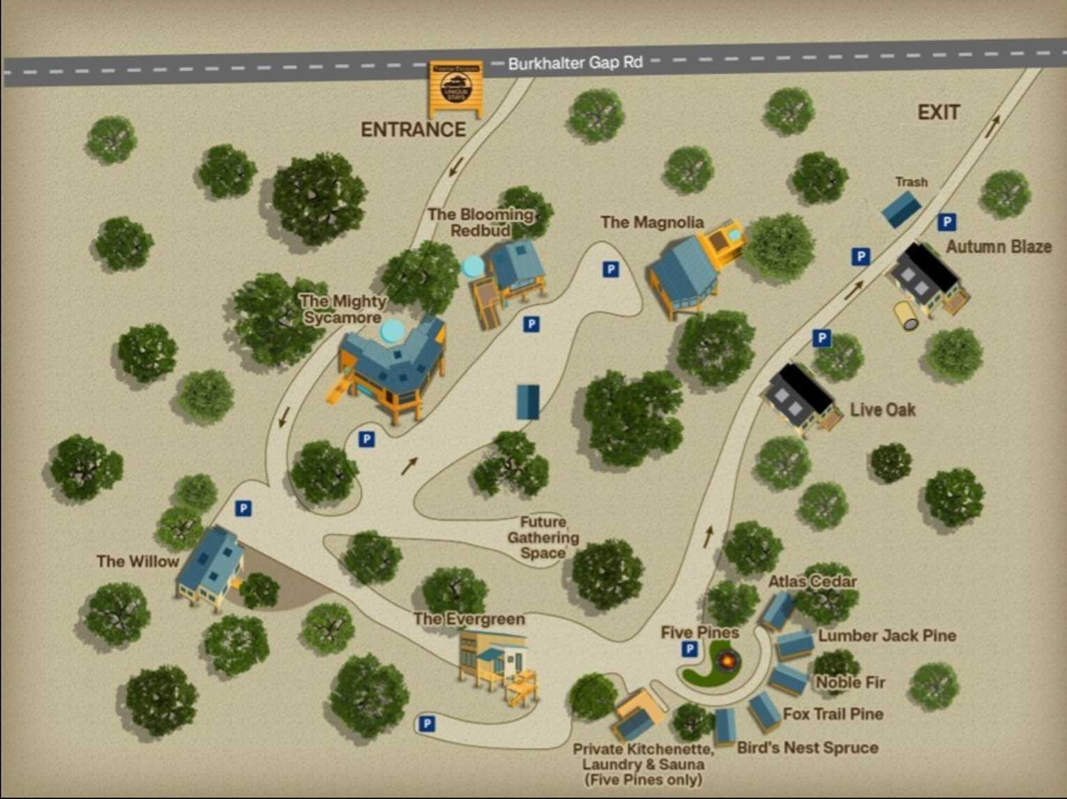 Treetop Escapes is a treehouse community located in the heart of Lookout Mountain in Georgia. The Mighty Sycamore Treehouse is one the newest additions to Treetop Escapes and we cannot wait for you to visit!