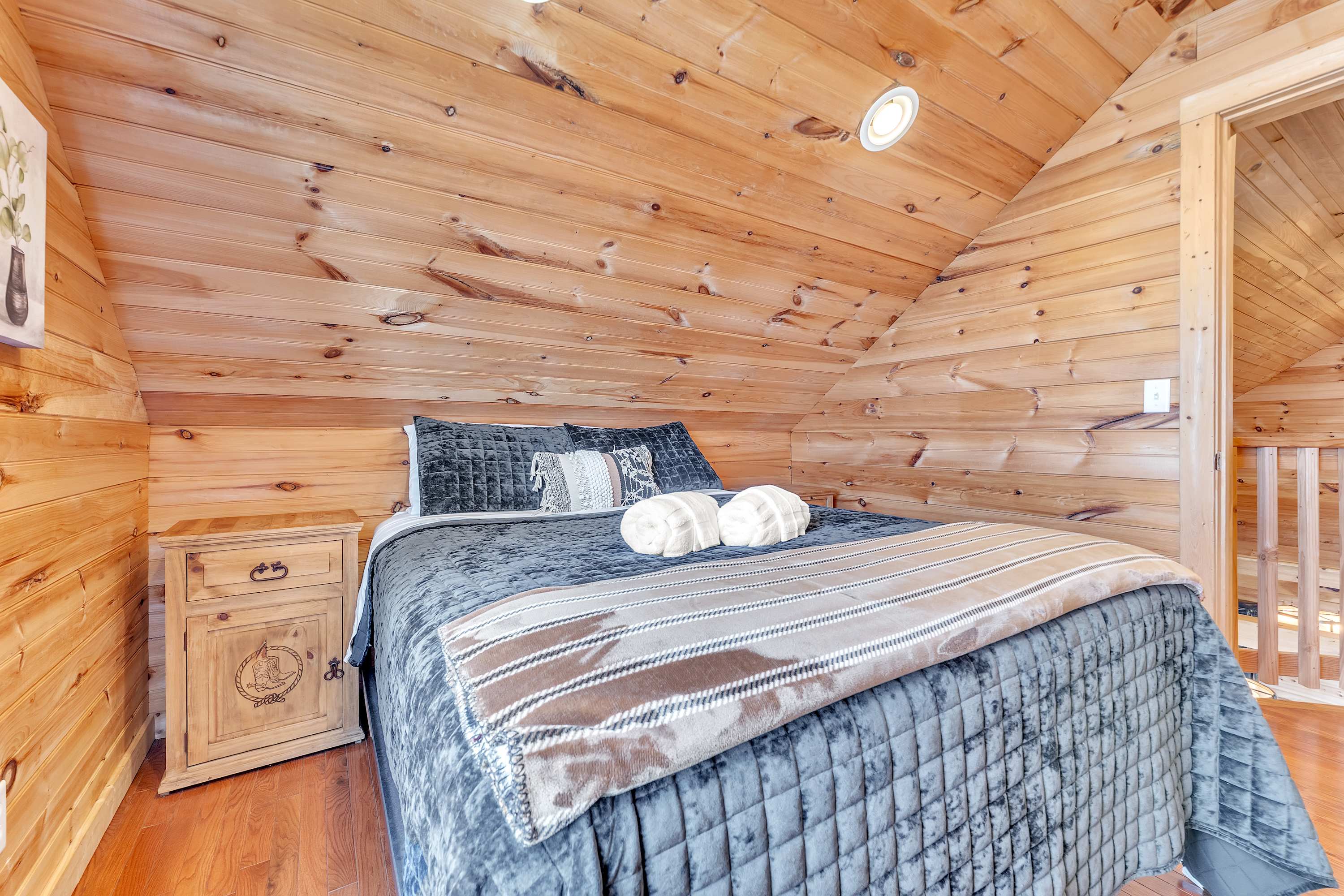 Welcome to Tri-State Cabin, your perfect retreat for relaxation and nature’s beauty. This spacious cabin accommodates up to 8 guests with 4 bedrooms and 2 bathrooms. Featuring 3 king beds and 1 queen bed, it’s ideal for families or groups seeking comfort and space.