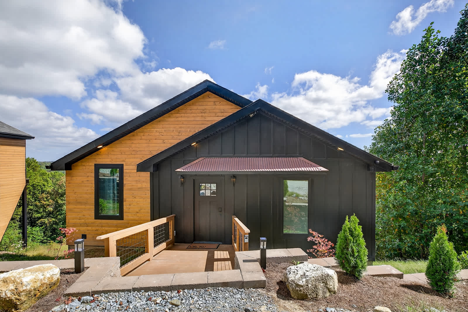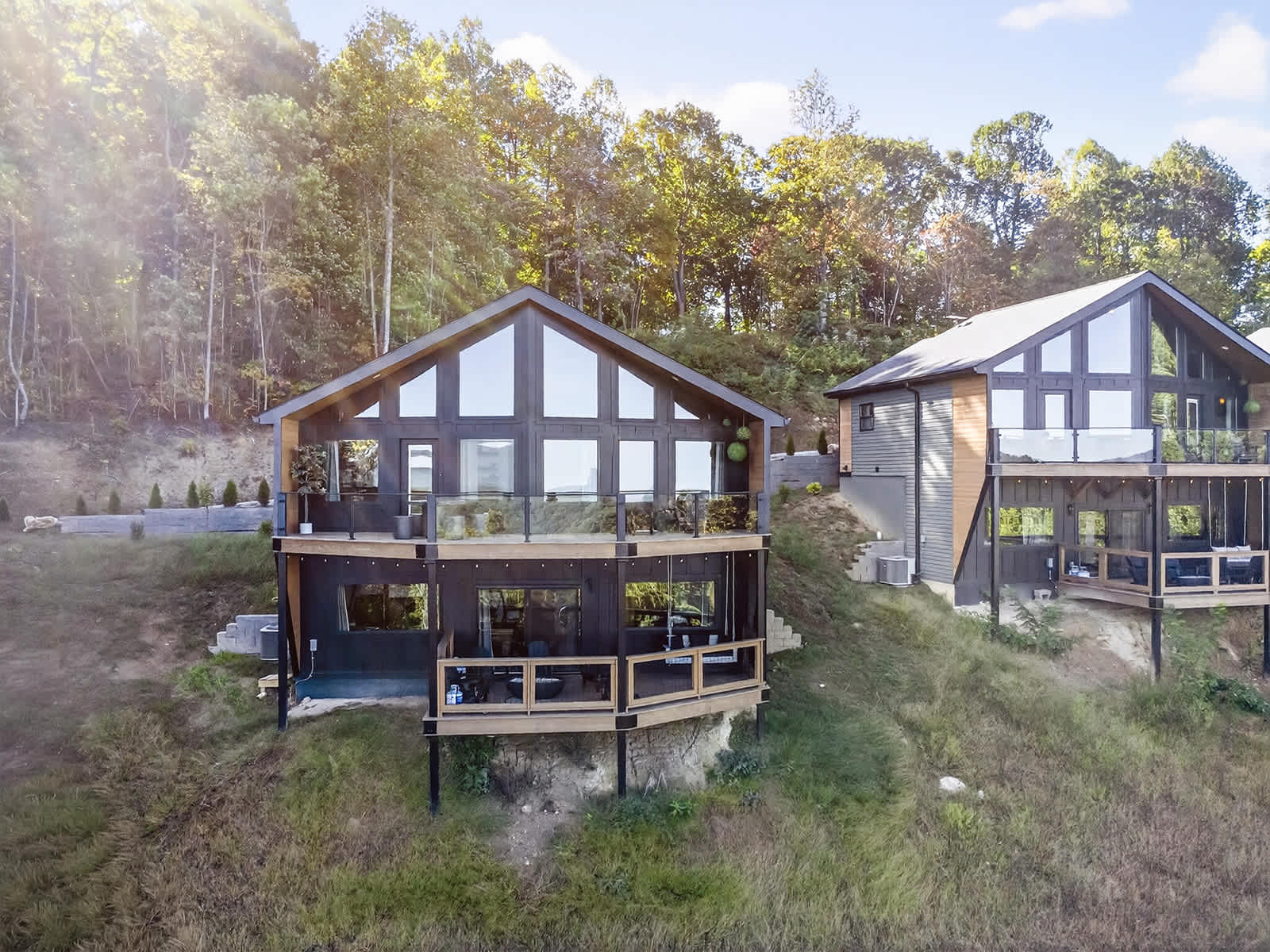 Both levels feature private decks to soak in the mountain setting. Gas fire pits and outdoor seating are on the way, offering even more reasons to enjoy evenings outside. With modern conveniences like a washer/dryer, two bathrooms, and a full kitchen, Twilight Timber is perfectly equipped for your stay.